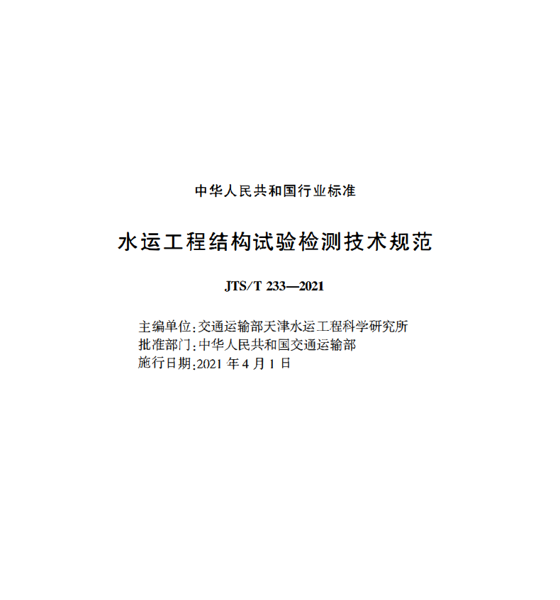 本規(guī)范適用于水運(yùn)工程結(jié)構(gòu)的試驗(yàn)檢測(cè)。2021-4-1實(shí)施。