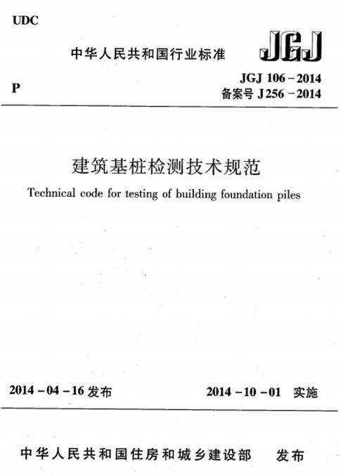 本規(guī)范經(jīng)住房和城鄉(xiāng)建設(shè)部2014年第384號(hào)公告批準(zhǔn)、發(fā)布,自2014年10月1日起實(shí)施。原《建筑基樁檢測(cè)技術(shù)規(guī)范》 JGJ106-2003同時(shí)廢止。