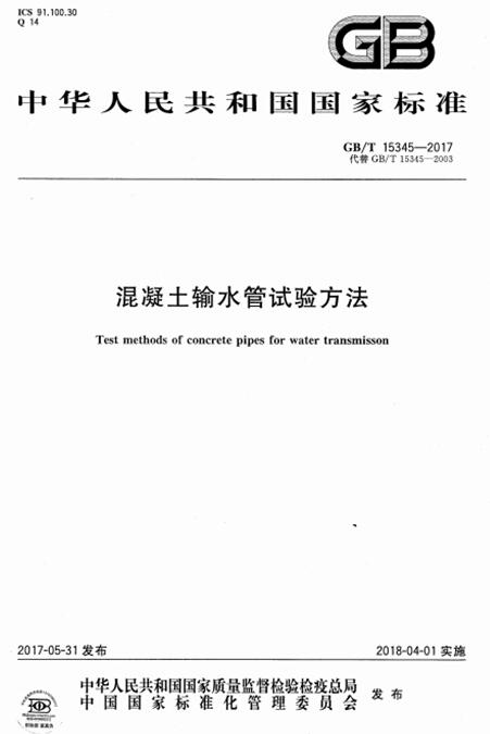 本標(biāo)準(zhǔn)規(guī)定了混凝土輸水管外觀質(zhì)量、幾何尺寸、水壓、外壓荷載、混凝土強(qiáng)度、保護(hù)層砂漿抗壓強(qiáng)度、保護(hù)層砂漿吸水率、管子接頭相對(duì)轉(zhuǎn)角等項(xiàng)目的試驗(yàn)方法。