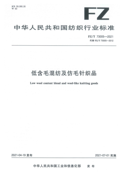 本標(biāo)準(zhǔn)適用于鑒定綿羊毛含量 30%以下的低含毛混紡針織品、非綿羊毛纖維純紡或混紡的仿毛針織品,及由上述針織物為主要面料與其他面料拼接而成的制品的品質(zhì),其他動物毛纖維制品亦可參照執(zhí)行。