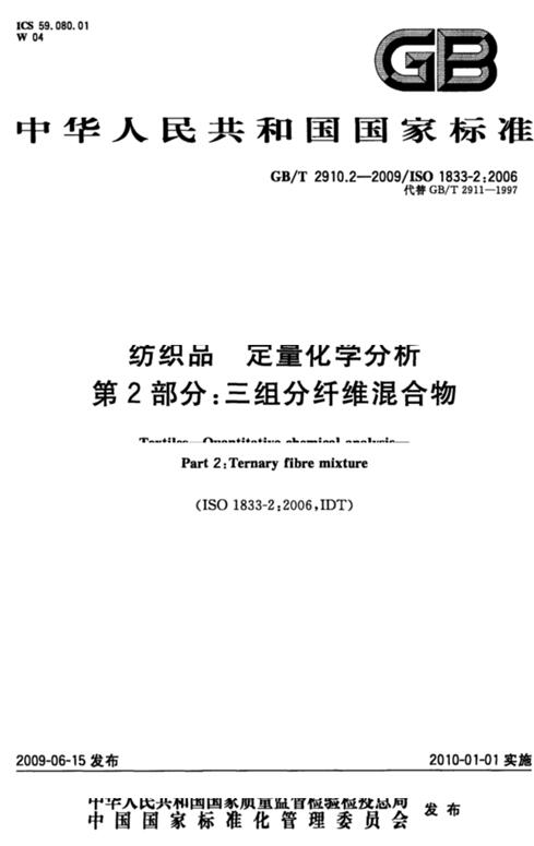 GB/T2910的本部分規(guī)定了各種三組分纖維混合物的定量化學(xué)分析方法。