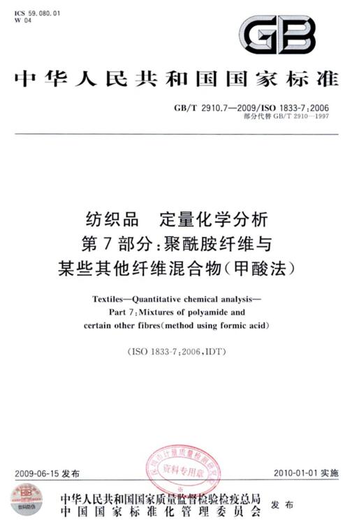 GB/T2910的本部分規(guī)定了采用甲酸法測定去除非纖維物質(zhì)后的聚酰胺纖維和棉、粘膠纖維、銅氨纖維、莫代爾纖維、聚酯纖維、聚丙烯纖維、含氯纖維、聚丙烯腈纖維或玻璃纖維等二組分混合物中纖維含量的方法。