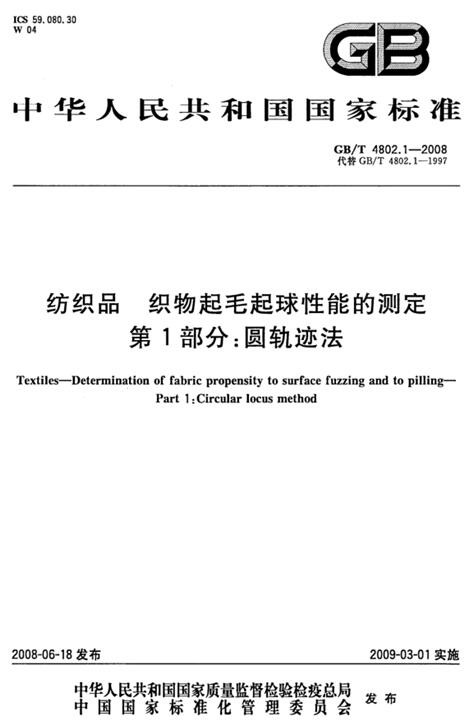 GB/T4802的本部分規(guī)定了采用圓軌跡法對織物表面起毛起球性能及表面變化進行測定的方法。