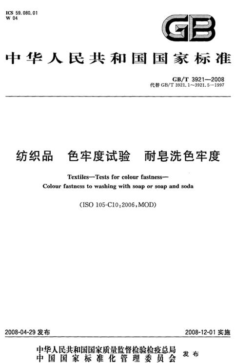 本標準代替GB/T3921.1—1997《紡織品 色牢度試驗 耐洗色牢度:試驗1》、GB/T3921.2—1997《紡織品 色牢度試驗 耐洗色牢度:試驗2》、GB/T3921.3—1997《紡織品 色牢度試驗 耐洗色牢度:試驗3》、GB/T3921.4—1997《紡織品 色牢度試驗 耐洗色牢度:試驗4》、GB/T3921.5—1997《紡織品 色牢度試驗 耐洗色牢度:試驗5》。本標準規(guī)定了測定常規(guī)家庭用所有類型的紡織品耐洗滌色牢度的方法,包括從緩和到劇烈不同洗滌程序的5種試驗。本標準僅用于測定對紡織品色牢度的影響,并不反映綜合洗燙程序的結(jié)果。本標準與GB/T3921.1~3921.5—1997相比,主要變化如下: