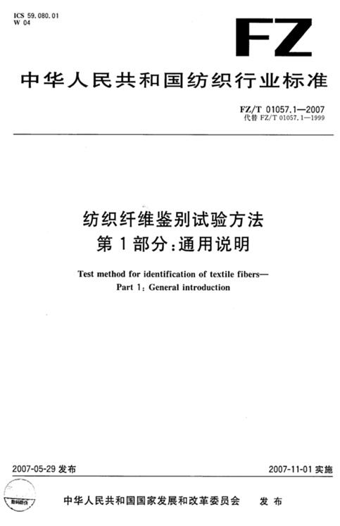 FZ/T01057的本部分是有關(guān)紡織纖維鑒別試驗方法的通用說明。本部分規(guī)定了紡織纖維鑒別試驗方法的一些共同性的技術(shù)要求并給出了纖維鑒別試驗的一般性程序,本部分適用于紡織纖維的鑒別。